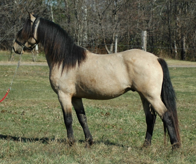 Doubly Bubbly 2008 Homozygous Gold Champagne Friesian Heritage, Sport Designated, Pony Stallion, son of Ukiah Norsk. 13.3 hands as a coming 4 year old. Color tested: ee Aa CHCH (red base, one copy of bay and two copies of Champagne). EVERY foal will be a champagne!! Breeding Fee: $800 Live Foal & Champagne Color Guarantee